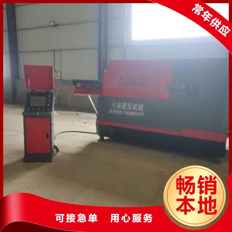 液压切断部分,该部分通过电机提供动力带动液压泵站通过电磁控制。使油缸杆运动,从而切断线材。活动油缸在弹簧作用下返回复位,等待下一次工作。七、弯曲部分:该部分通过油缸推动转动偏心圆盘进行弯曲达到角度弯曲要求,复位后等待下一个工作循环。八、承受架部分:通过切断弯勾,线材沿着承受架前进,待到达规定的长度后,动力切断线材,线材自动滑下。等待下一次工作循环。钢筋弯箍机--弯箍机特点参数1.自动化程度高,牵引速度快,工作效率高,调直效果好。自动调直送料,弯曲中心自动切断,自动弯钩。2.设计独特的水平矫直机构,可分别对每根钢筋进行单独矫直,不但了水平方向的矫直效果,而且可保证两钢筋平行,从而保证了钢筋的弯制质量。3.加工尺寸准确,可对6-10毫米热轧带助钢筋、圆钢、冷压带助钢筋进行调直、切断、弯曲次成型加工。4.双弯头同时弯钩速度更快,效率更高。5.采用触摸屏PLC可编程序控制器编程,只要输入产品尺寸即可生产。6.简易型设计,简易式操作,全中文菜单显示,懂得调直机的人即学即会,三分钟教会操作。7.所有滚轮均采用优质合金钢制造,硬度高,耐磨性好,了使用寿命;8.本机器增加入口辅助调直轮,保护驱动轮及调直筒寿命;9.前后加大压轮驱动动力更强劲合金材料制作保用一年;。